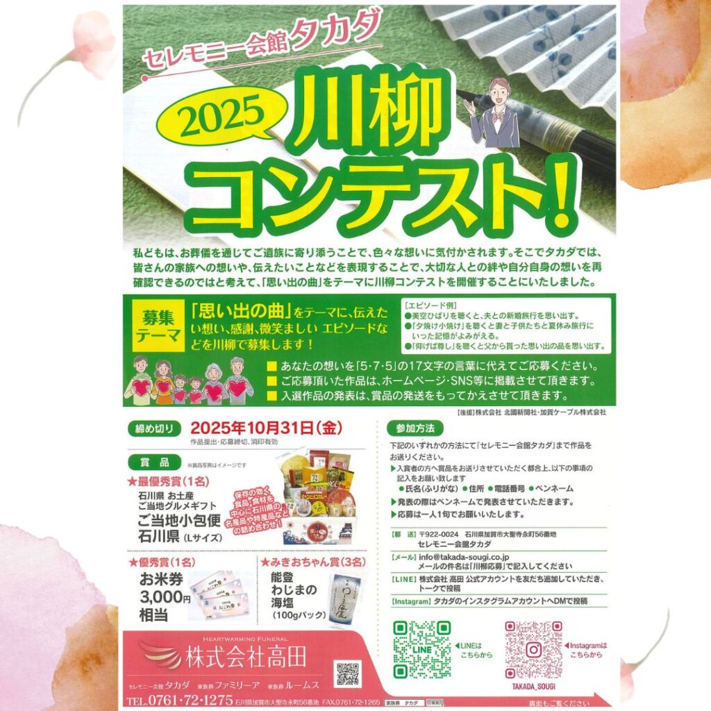 また、あわせて川柳コンテストも開催しております。募集テーマは、「思い出の曲」。伝えたい想い、微笑ましいエピソードなどを川柳にして応募してみませんか?参加方法は、郵送やメール、当社公式アカウント、インスタグラム等で募集しております。