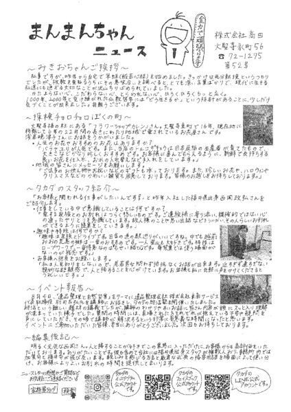 2025年秋発刊●みきおちゃんご挨拶●探検チョロチョロぼくの町「フラワーショップカレン」●タカダのスタッフ紹介●イベント報告